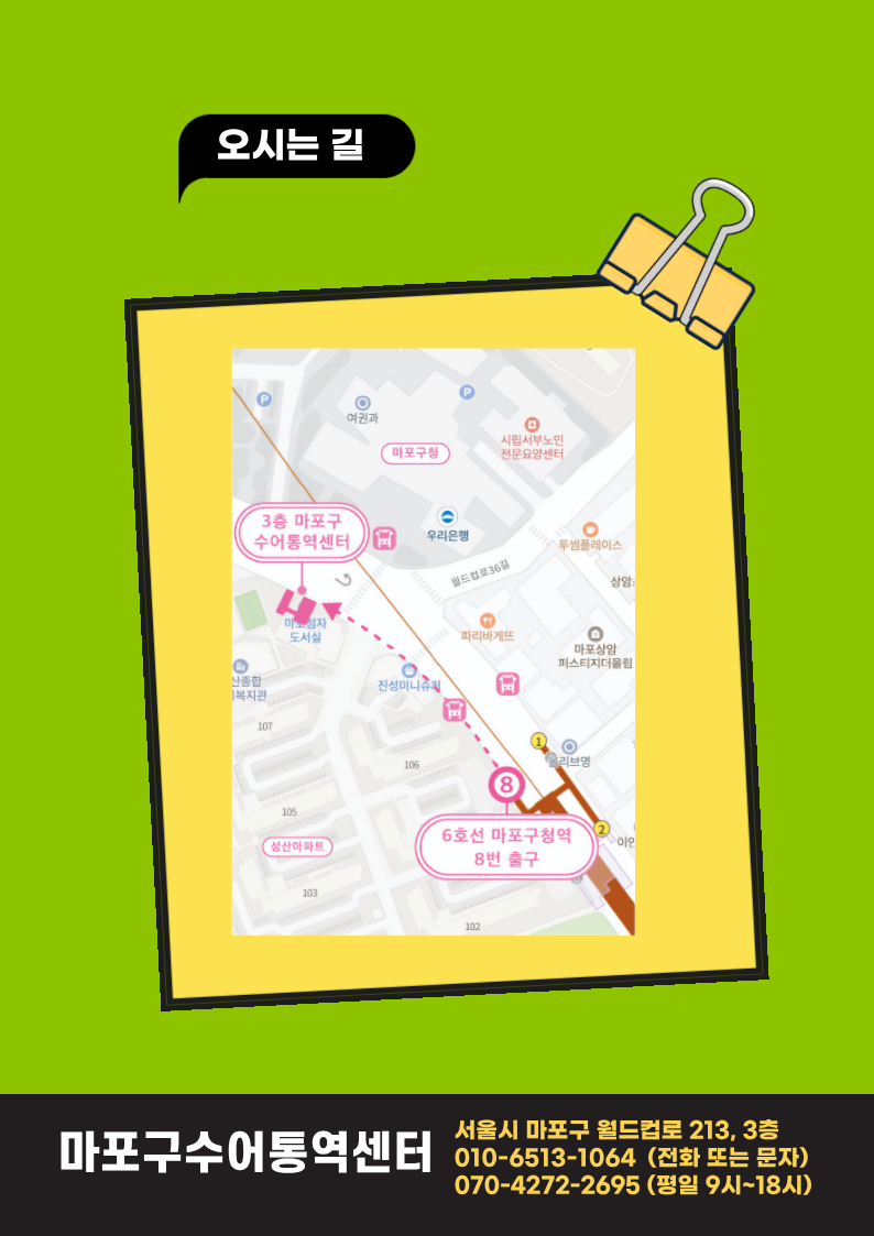 안녕하세요. 마포구수어통역센터입니다.