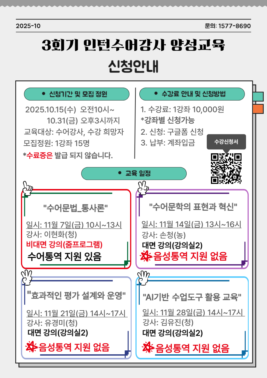 [경기도수어교육원] 3회기 인턴수어강사 양성교육 신청안내