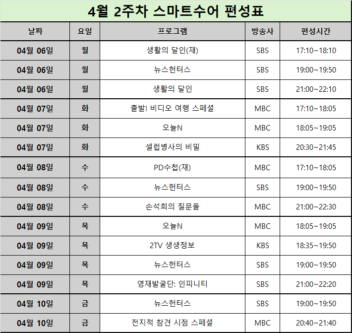 [스마트수어방송] 2026년 4월 2주차 편성표 안내