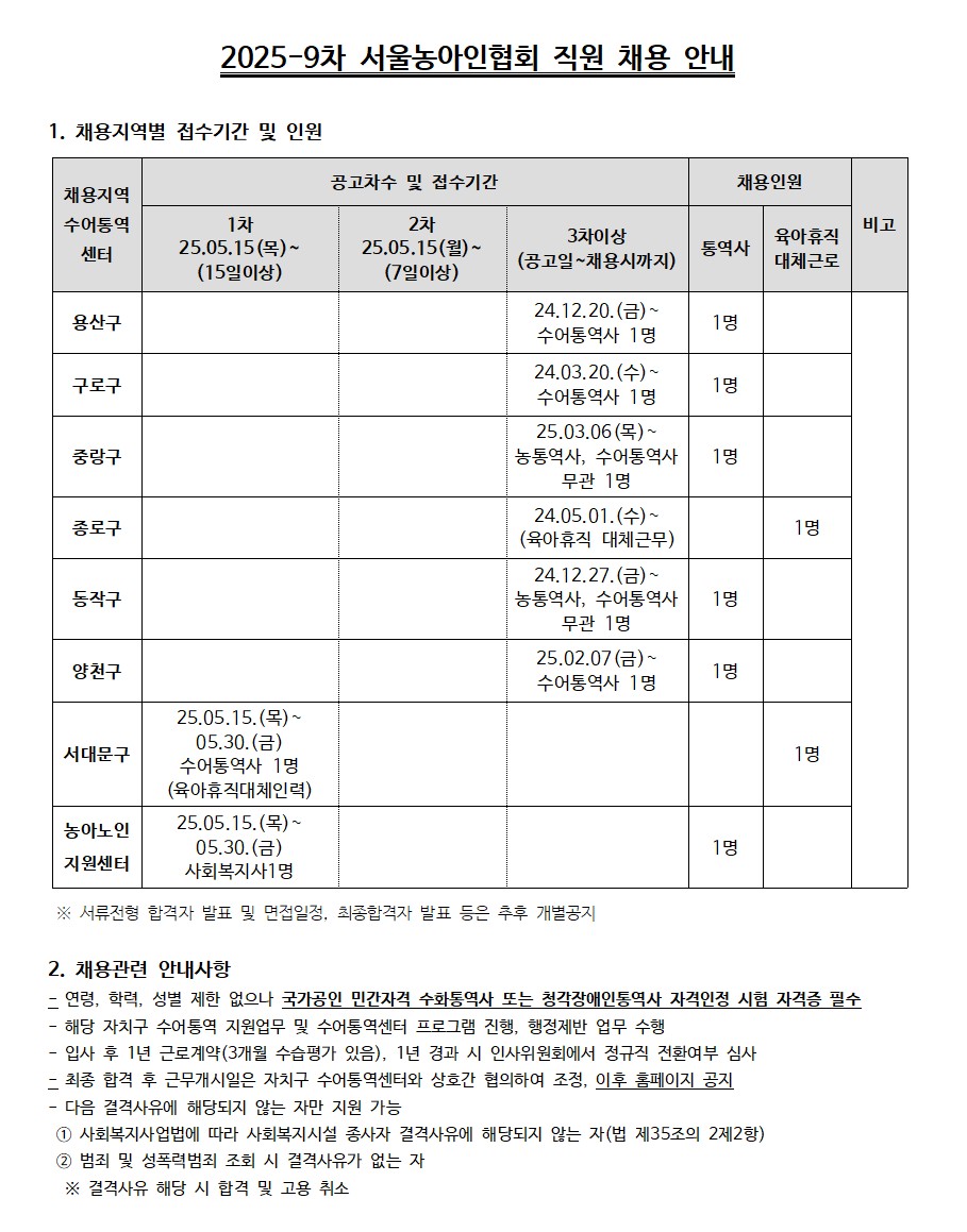 [서울특별시수어통역센터지역지원본부] 2025-9차 직원 공개채용